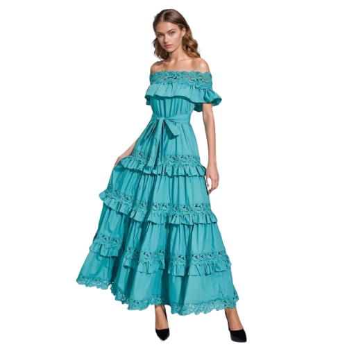 V-Neck Open-Shoulder Dress