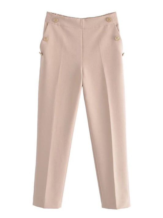 Metal Button Straight Trousers