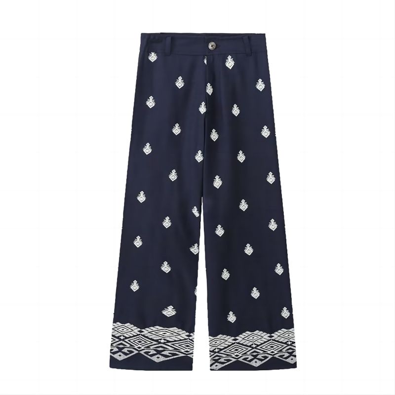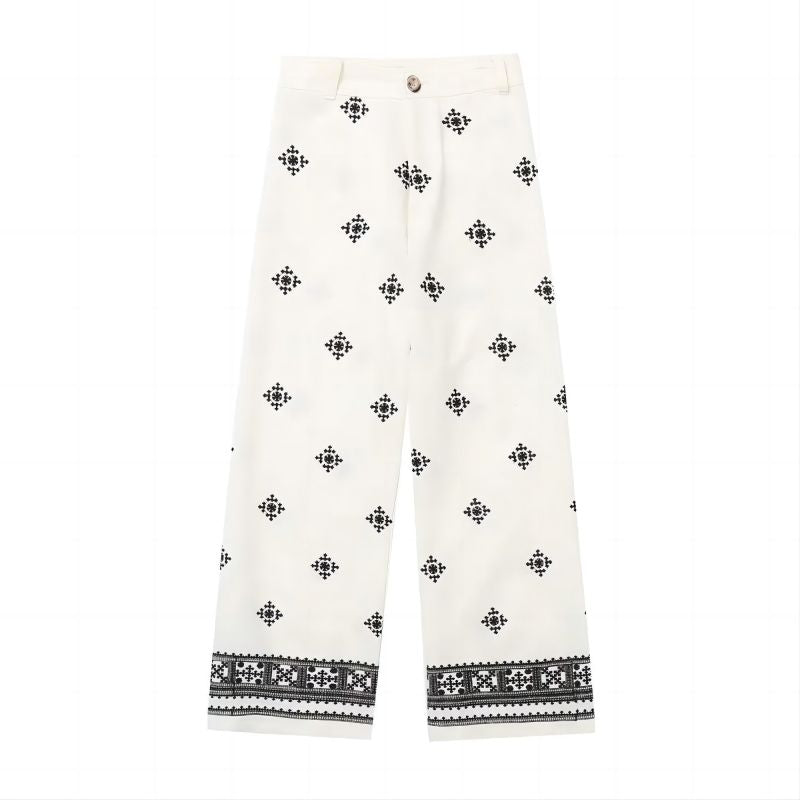 Printed Linen High-waisted Pants