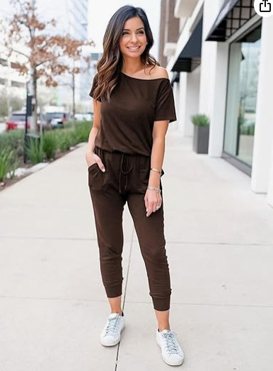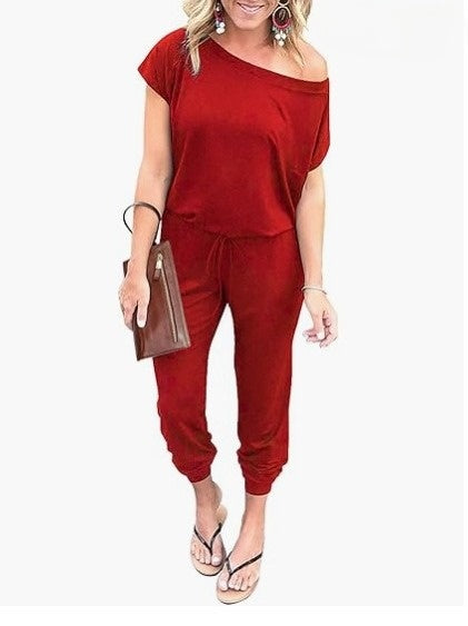 Women's Short-sleeved Slanted Shoulder Jumpsuit